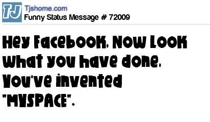 X Hey Facebook, Now look what you have done, You've invented "MYSPACE".