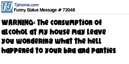 X says WARNING: The consumption of alcohol at my house may leave you wondering what the hell happened to your bra and panties