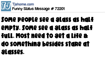 X says Some people see a glass as half empty. Some see a glass as half full. Most need to get a life & do something besides stare at glasses.