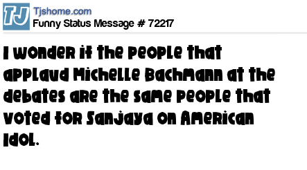 X I wonder if the people that applaud Michelle Bachmann at the debates are the same people that voted for Sanjaya on American Idol.
