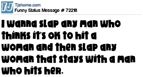 X says I wanna slap any man who thinks it's ok to hit a woman and then slap any woman that stays with a man who hits her.