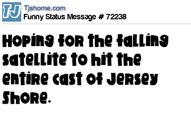 X is hoping for the falling satellite to hit the entire cast of Jersey Shore.