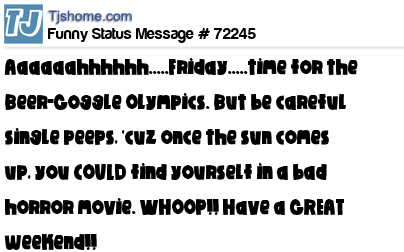 X says Aaaaaahhhhhh.....Friday.....time for the Beer-Goggle Olympics. But be careful single peeps, 'cuz once the sun comes up, you COULD find yourself in a bad horror movie. WHOOP!! Have a GREAT weekend!!