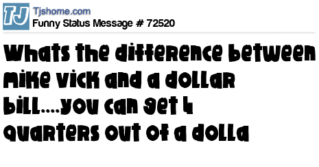 X whats the difference between mike vick and a dollar bill....you can get 4 quarters out of a dolla