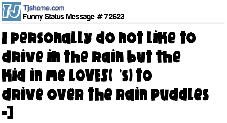 X says I personally do not like to drive in the rain but the kid in me LOVES(♥'s) to drive over the rain puddles =]
