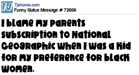 X I blame my parents subscription to National Geographic when I was a kid for my preference for black women.