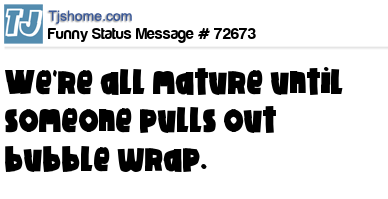 - # 73330 X says We're all mature until someone pulls out bubble wrap.