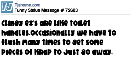 X Clingy ex's are like toilet handles.Occasionally we have to flush many times to get some pieces of krap to just go away.