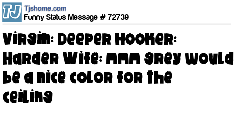 X  Virgin: Deeper Hooker: Harder Wife: mmm grey would be a nice color for the ceiling