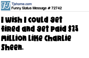 X says I wish I could get fired and get paid $25 million like Charlie Sheen.
