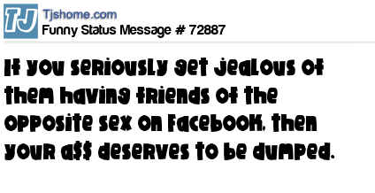 X says If you seriously get jealous of them having friends of the opposite sex on Facebook, then your a$$ deserves to be dumped.