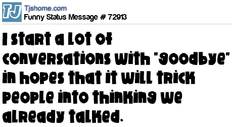 X I start a lot of conversations with "goodbye" in hopes that it will trick people into thinking we already talked.