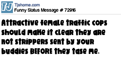 X Attractive female traffic cops should make it clear they are not strippers sent by your buddies BEFORE they tase me.