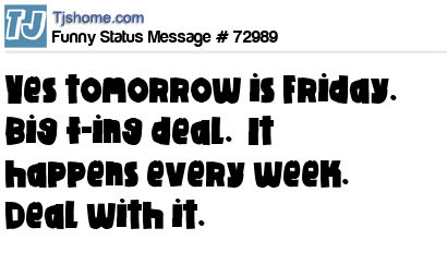 X Yes tomorrow is Friday. Big f-ing deal. It happens every week. Deal with it.