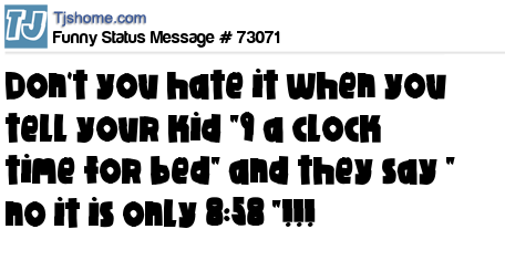 X Don't you hate it when you tell your kid "9 a clock time for bed" and they say " no it is only 8:58 "!!!
