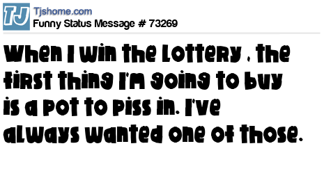 X says When I win the lottery , the first thing I'm going to buy is a pot to piss in. I've always wanted one of those.