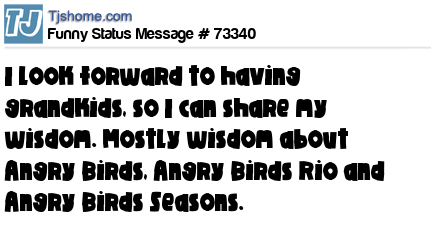 X says I look forward to having grandkids, so I can share my wisdom. Mostly wisdom about Angry Birds, Angry Birds Rio and Angry Birds Seasons.