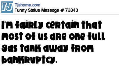 X says I'm fairly certain that most of us are one full gas tank away from bankruptcy.
