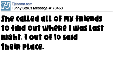 X She called all of my friends to find out where I was last night. 7 out of 10 said their place.