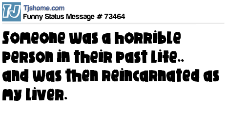 X Someone was a horrible person in their past life.. and was then reincarnated as my liver.