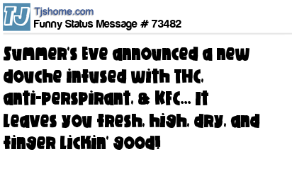 - # 95242 Ladies, Summer's Eve just announced a new douche infused with THC, anti-perspirant, and KFC... It leaves you fresh, high, dry, and finger lickin' good!