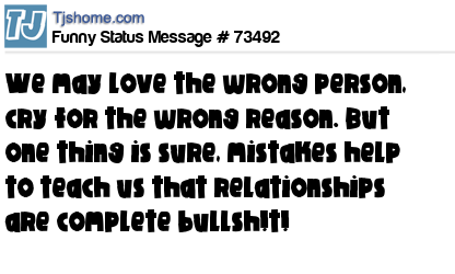 X We may love the wrong person, cry for the wrong reason. But one thing is sure, mistakes help to teach us that relationships are complete bullsh!t!