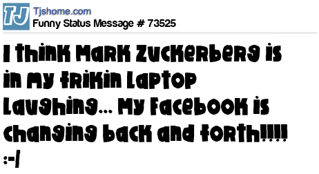 X I think Mark Zuckerberg is in my frikin laptop laughing... My Facebook is changing back and forth!!!! :-/
