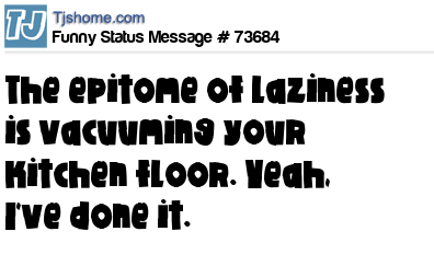 X says The epitome of laziness is vacuuming your kitchen floor. Yeah, I've done it.