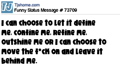 X is I can choose to let it define me, confine me, refine me, outshine me or I can choose to move the f*ck on and leave it behind me.