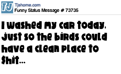 X is I washed my car today, just so the birds could have a clean place to $hit...