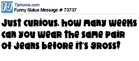X Just curious, how many weeks can you wear the same pair of jeans before it's gross?