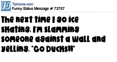 X says The next time I go ice skating, I'm slamming someone against a wall and yelling, "Go Ducks!!"
