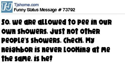X So, we are allowed to pee in our own showers, just not other people's showers. Check. My neighbor is never looking at me the same, is he?