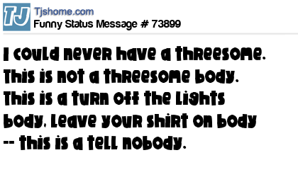 X says I could never have a threesome. This is not a threesome body. This is a turn off the lights body, leave your shirt on body -- this is a tell nobody.