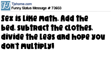 - # 107255 Sex is like Math, You subtract the clothes, Add a Bed, Divide the legs, and hope you don't Multiply!!!