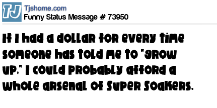 X If I had a dollar for every time someone has told me to "grow up," I could probably afford a whole arsenal of Super Soakers.