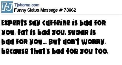 - # 103749 Experts say caffeine is bad for you, fat is bad you, sugar is bad for you… But don't worry, worrying is also bad for you too