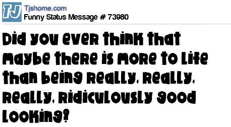 X Did you ever think that maybe there is more to life than being really, really, really, ridiculously good looking?