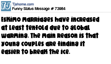 X is Eskimo marriages have increased at least tenfold due to global warming. The main reason is that young couples are finding it easier to break the ice.