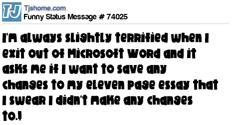 X says I'm always slightly terrified when I exit out of Microsoft Word and it asks me if I want to save any changes to my eleven page essay that I swear I didn't make any changes to.!