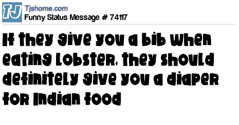 - # 68737 If they give you a bib for lobster, they should definitely give you a diaper for Indian food.
