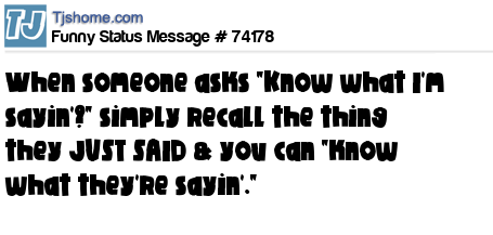 X When someone asks "Know what I'm sayin'?" simply recall the thing they JUST SAID & you can "know what they're sayin'."