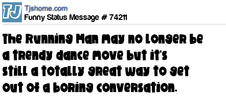 - # 171597 The "running man" may no longer be a trendy dance move, but it's a cool way to get out of a boring conversation