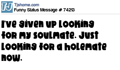 X I've given up looking for my soulmate. Just looking for a holemate now.