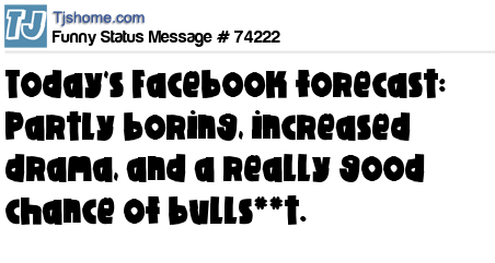 X is Today's Facebook forecast: Partly boring, increased drama, and a really good chance of bulls**t.