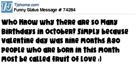 X Who know why there are so Many Birthdays in October? Simply because valentine day was nine months Ago people who are born in this month most be called fruit of love ;)