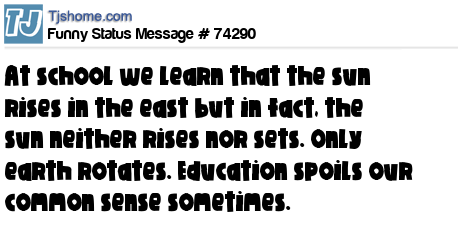 X At school we learn that the sun rises in the east but in fact, the sun neither rises nor sets. Only earth rotates. Education spoils our common sense sometimes.