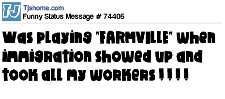 - # 12236 was playing "FARMVILLE" when immigration showed up and took all my workers ! ! !