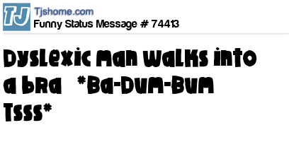 - # 57891 Dyslexic man walks into a bra *Ba-Dum-Bum Tsss*