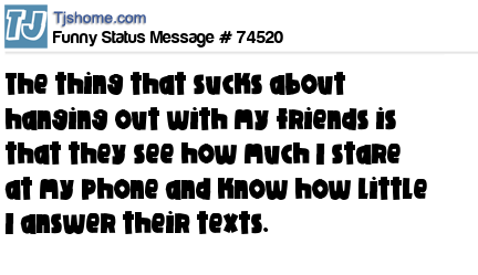 - # 76654 The thing that sucks about chilling with friends is that they see how much I stare at my phone & know how little I answer their texts.